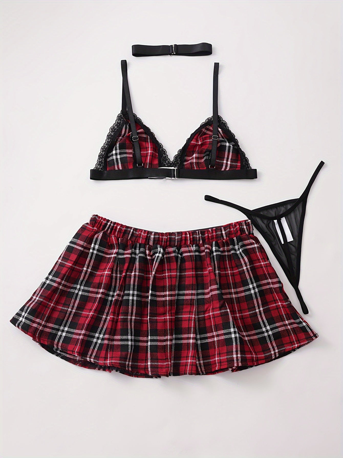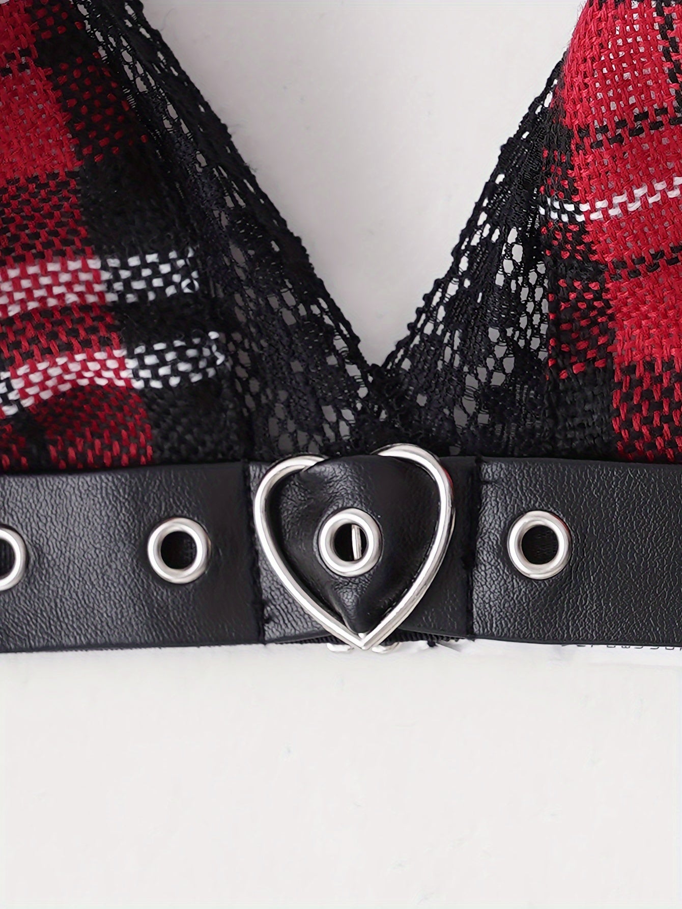 اكتشفي مجموعة اللانجري المثيرة الجديدة التي تضم حمالة صدر باللون الأحمر والأسود مع تفاصيل معدنية، وحزام بارد بأطوال شبكة مع تنورة متناسقة. إنها مثالية للبالغين الذين يرغبون في مظهر جريء وغامق.