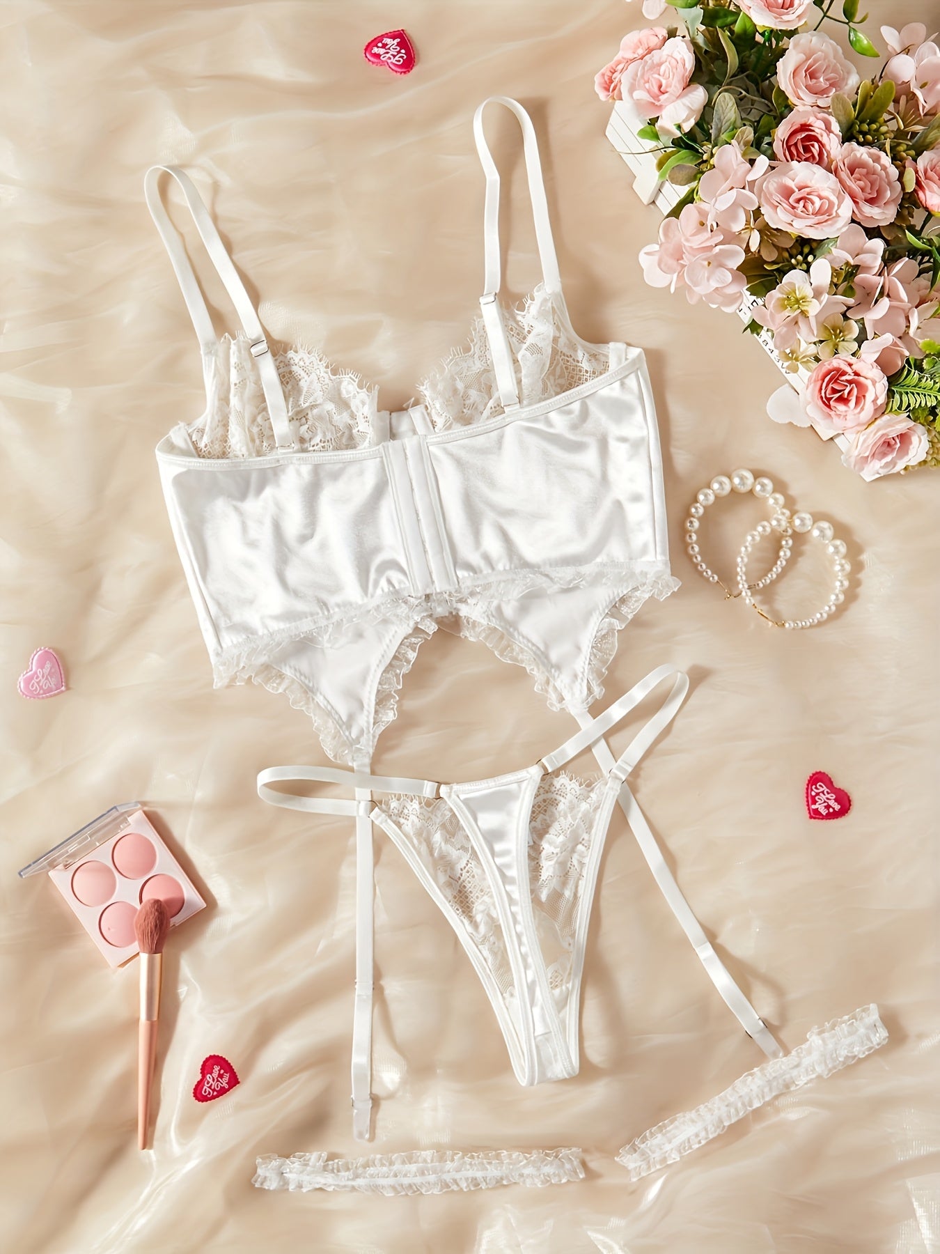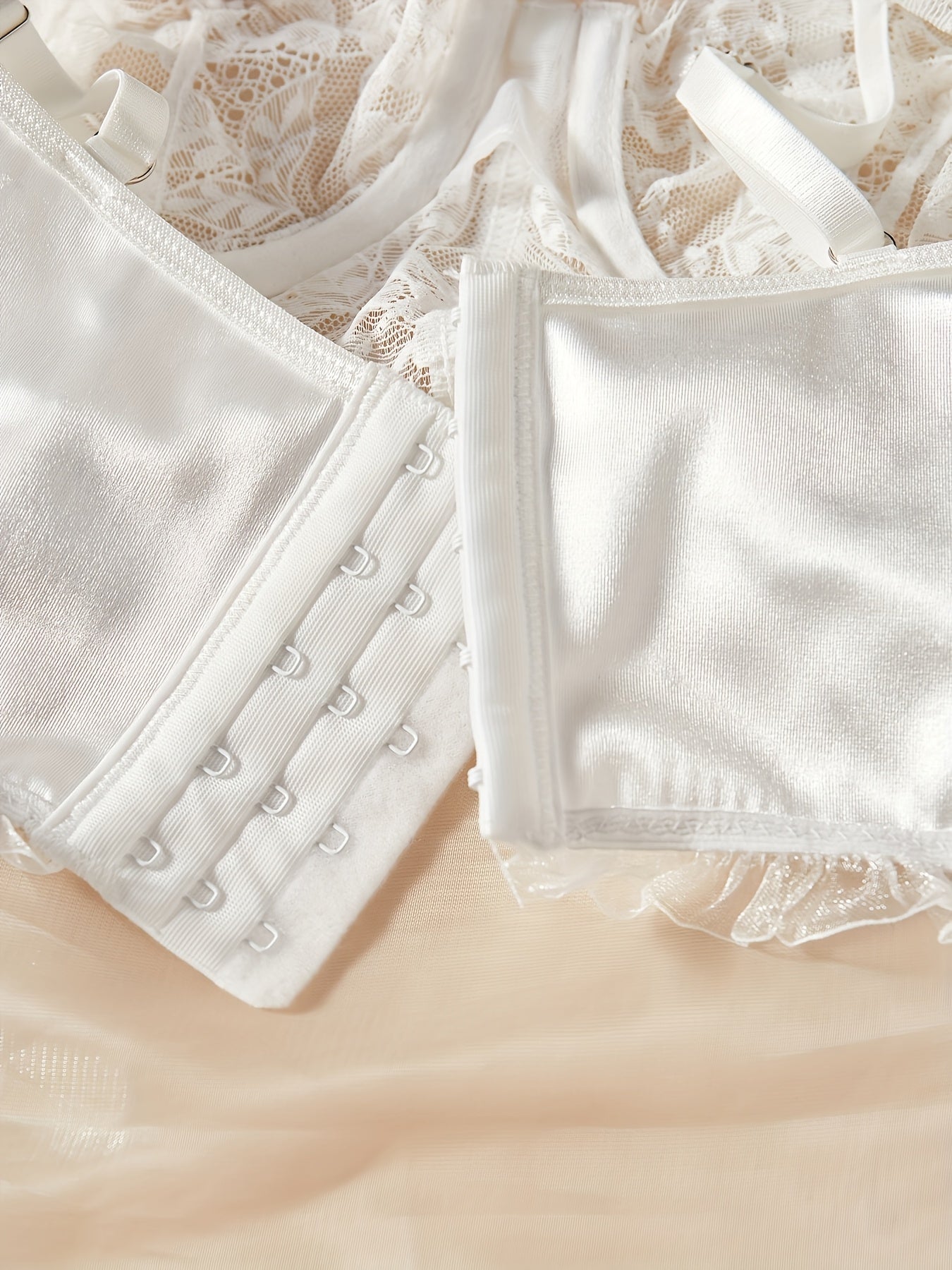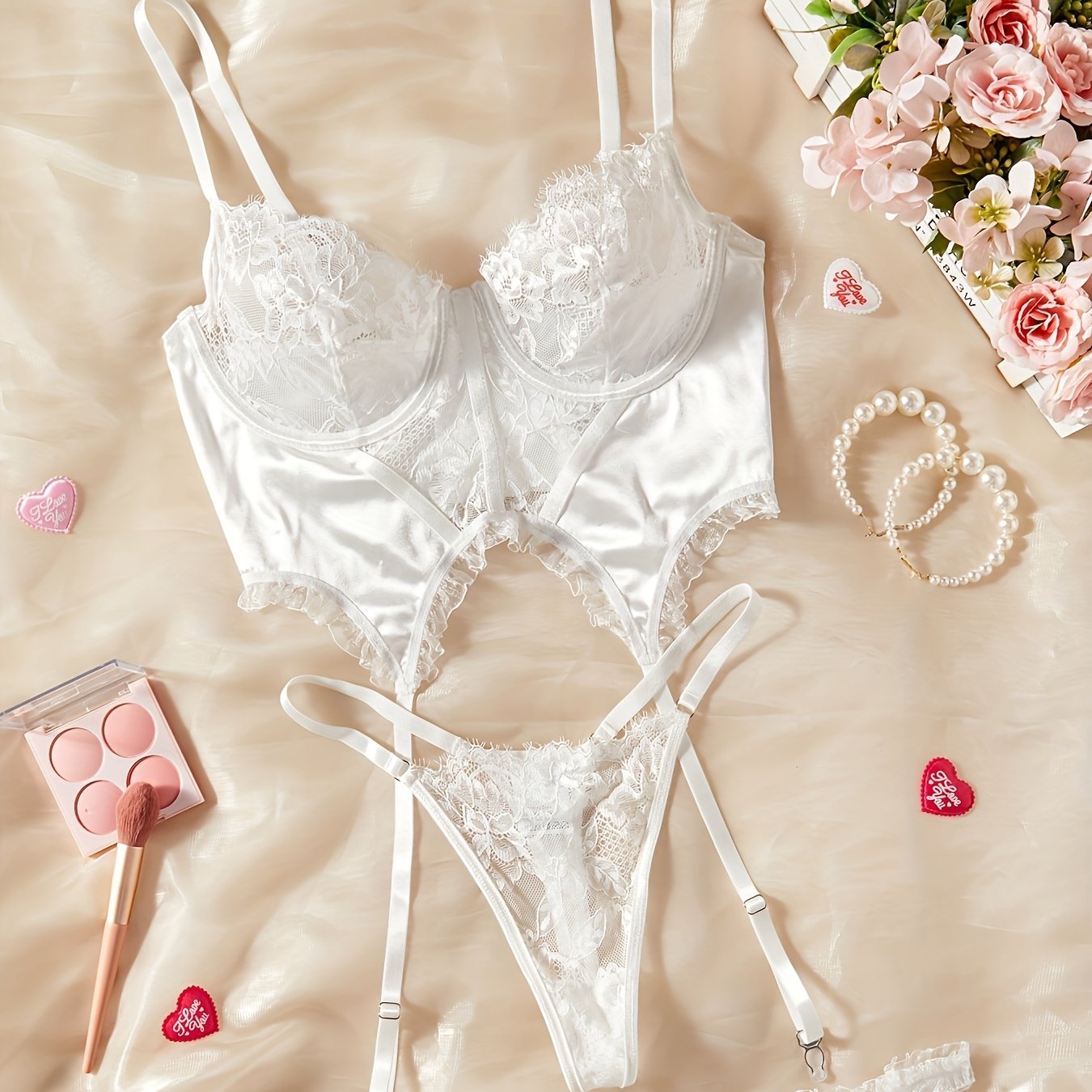 استمتع بأناقة وراحة مع مجموعة اللانجري النسائية المثالية للبالغات. تأتي المجموعة بتصميم مثير ونقش زهور، وتحوي على: