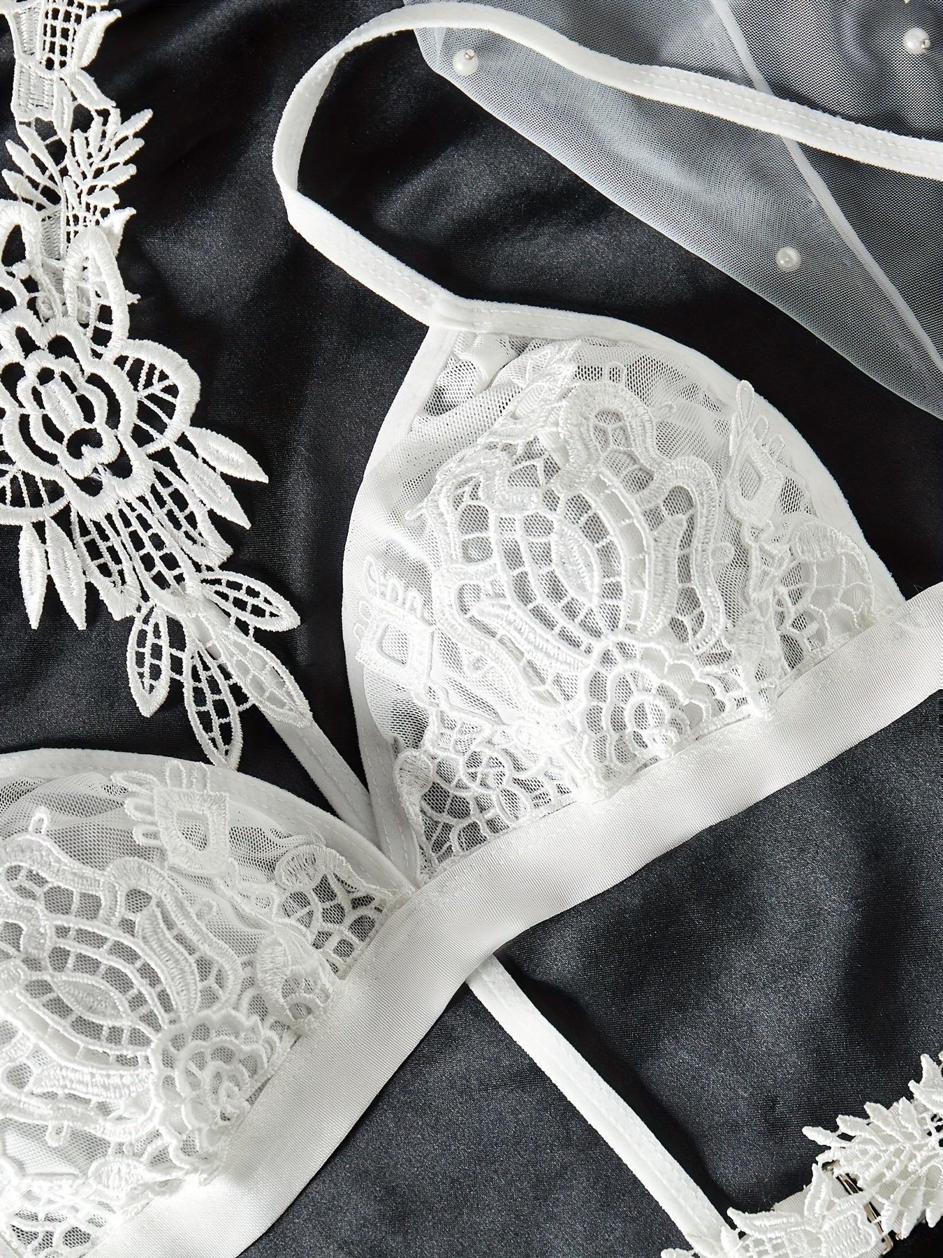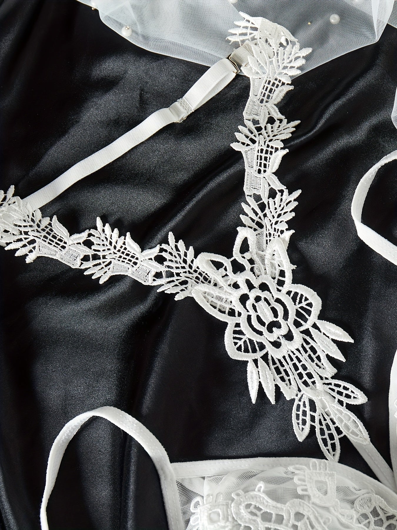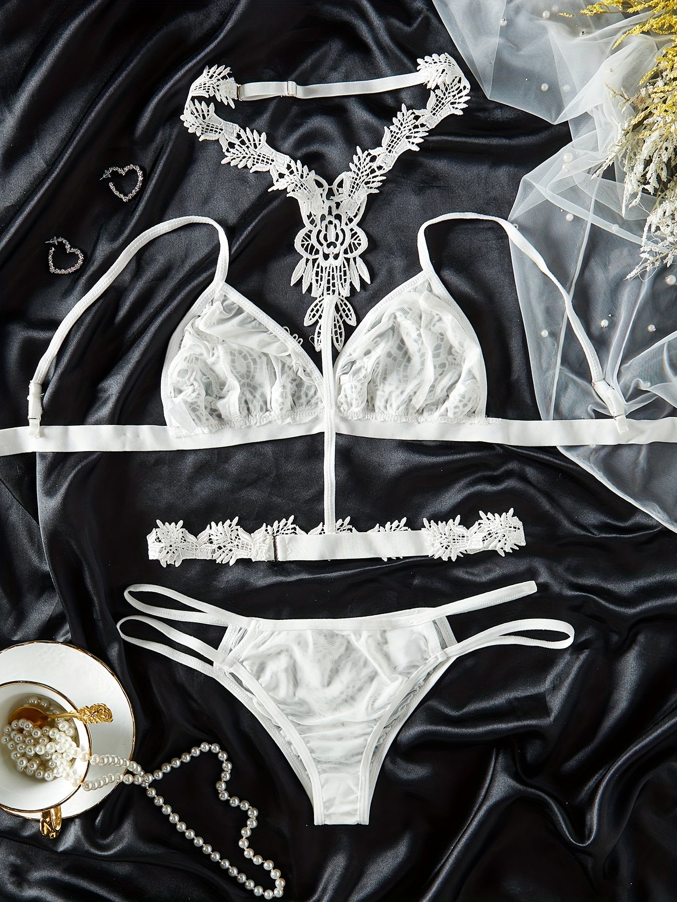 استمتع بأناقة مجموعة الملابس الداخلية البيضاء هذه، فهذه المجموعة تتضمن حمالة صدر وسروال بجودة عالية تناسب الكبار.