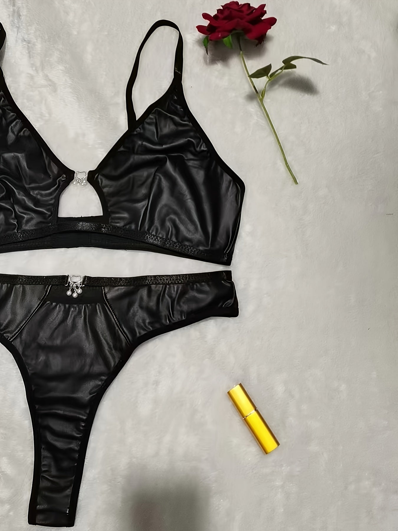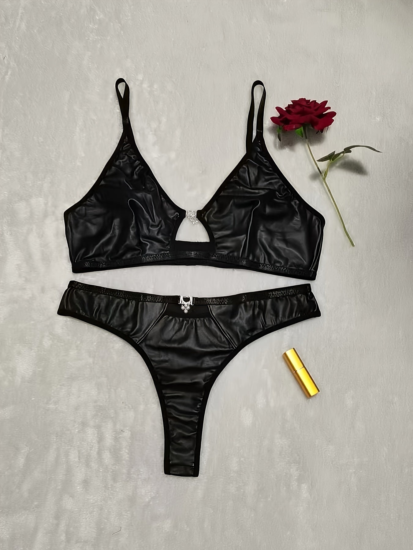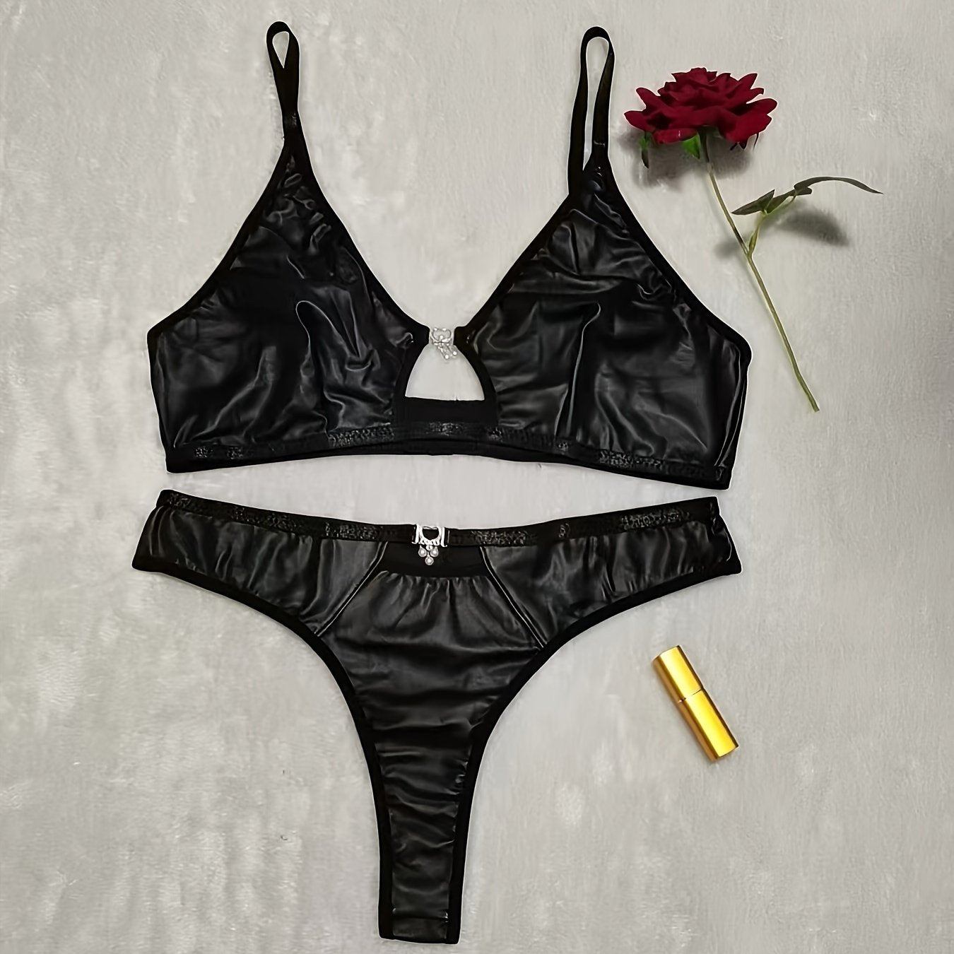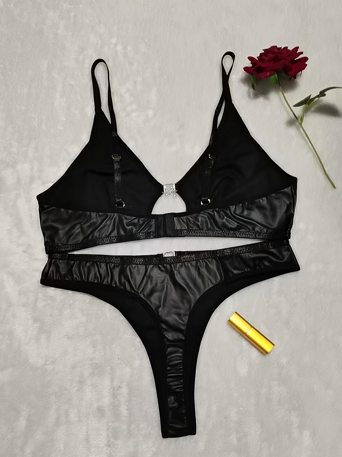استمتع أناقتك مع مجموعة الملابس الداخلية الأنيقة الكبيرة الحجم. تتميز بتصميم بدون ظهر accents معدنية، وهي مصنوعة من قماش يمتاز بالمرونة المتوسطة.