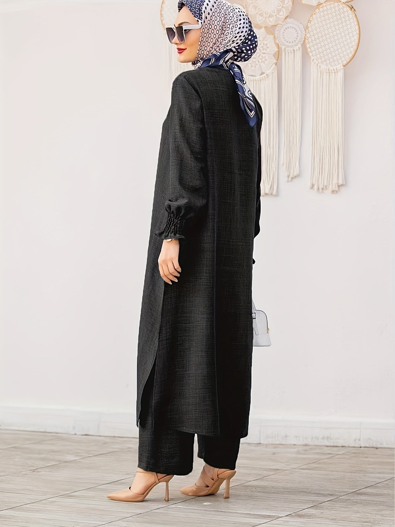 تخيلي نفسك في أمسية ساحرة، مرتدية هذه البدلة الأنيقة التي ستجذب الأنظار إليك حتماً. تصميمها الأنيق يوفر لك راحة لا تضاهى، مما يجعلك محط الأنظار خلال السهرات والحفلات الخاصة.